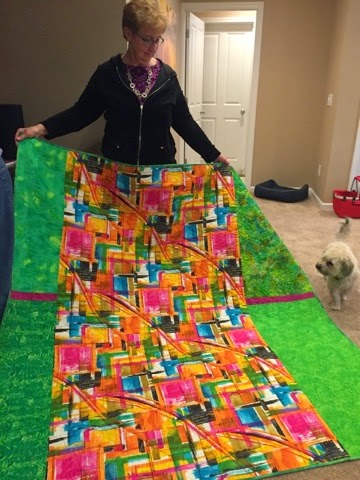 Our first place winner was Lynn! We started at 11:11 and Lynn finished at 12:00. The last of the sewing wrapped up at 12:49 but there was a lot of other stuff going on during that time. We had two dance breaks and some snacks and margaritas--all without stopping the clock. Boy have things changed in that regard since the first race.